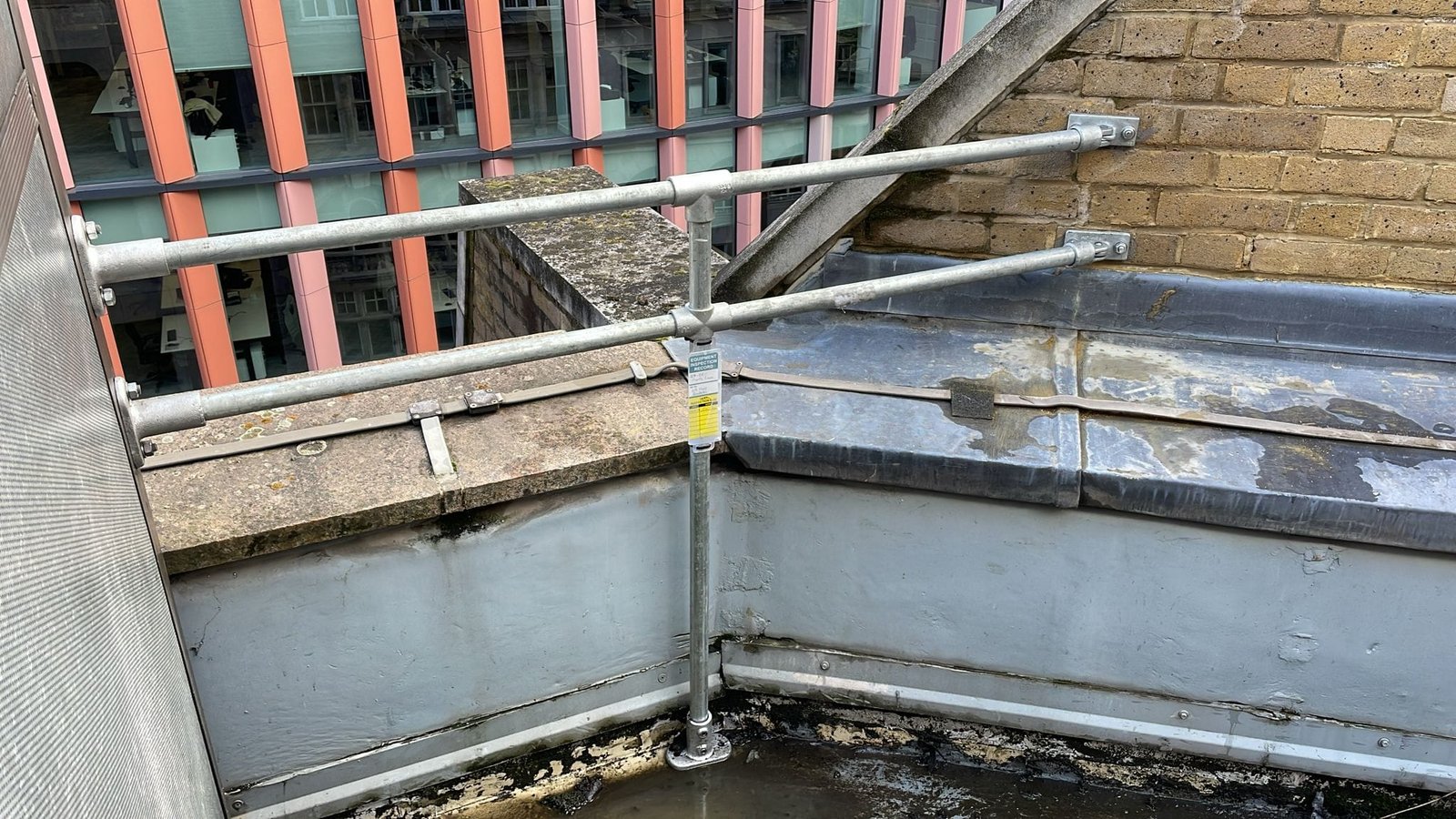 We recently attended 24–28 Martin Lane to carry out two essential safety upgrades across the site: the installation of a key clamp guard rail on the Artur Street elevation and the addition of a secure lock and chain for a roof access gate.